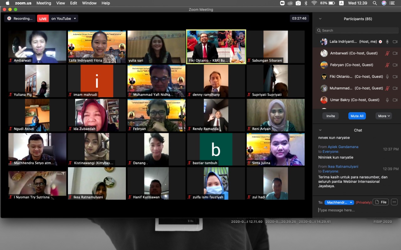Internasional Webinar Series FISIP UJ: Indonesia Citizen Protection Based on "Safe Travel Scheme" Amidst COVID-19 Pandemic