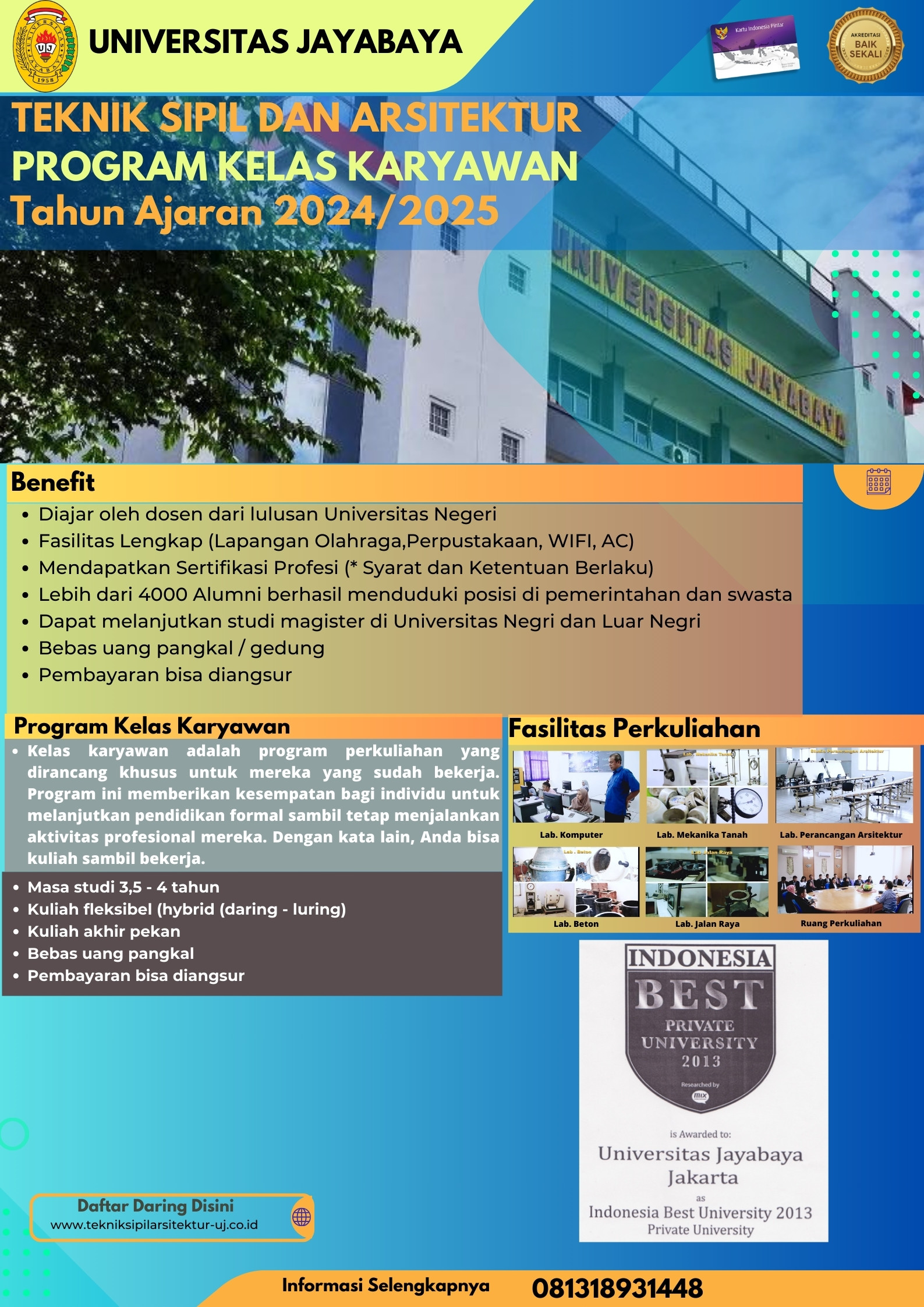 Link Pendaftaran: http://www.jayabaya.ac.id/pmb
